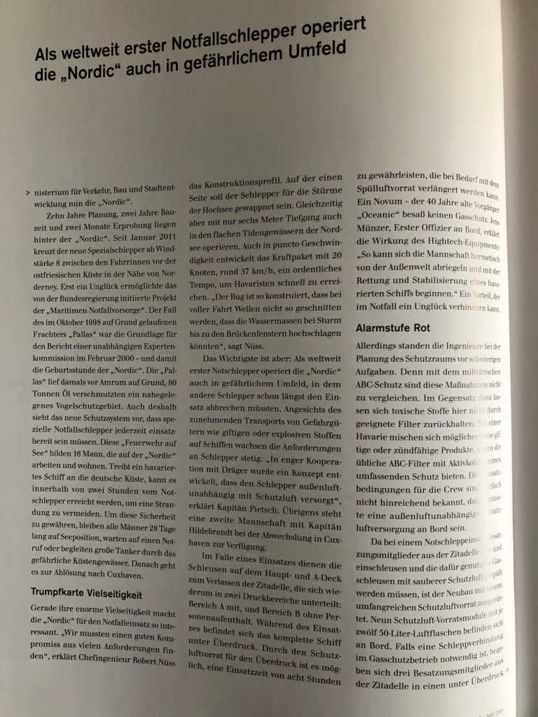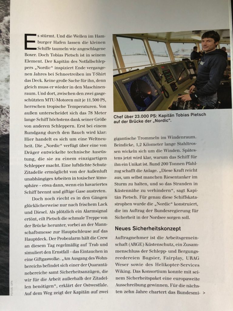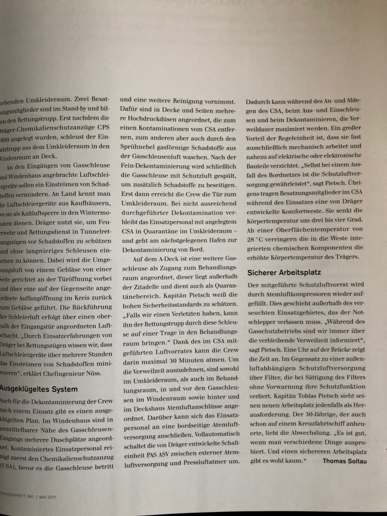 Titelgeschichte im Dräger Magazin über einen Notfallschlepper.